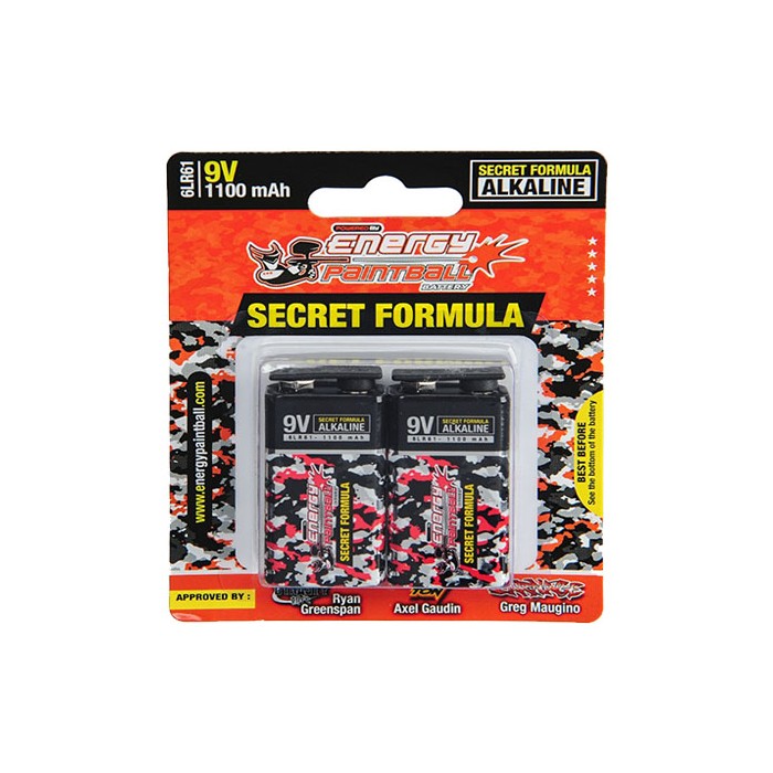 Energy Paintball engineers have developed different kind of products: Alkaline and rechargeable products. They have developed 9V and AA in the booth technology. The products are packaged to be optimized for the player, it could find pack of double 9V for hishopper, single 9V for his marker (or other kind of hopper) and AA by 6 batteries for his loader (type Rotor).