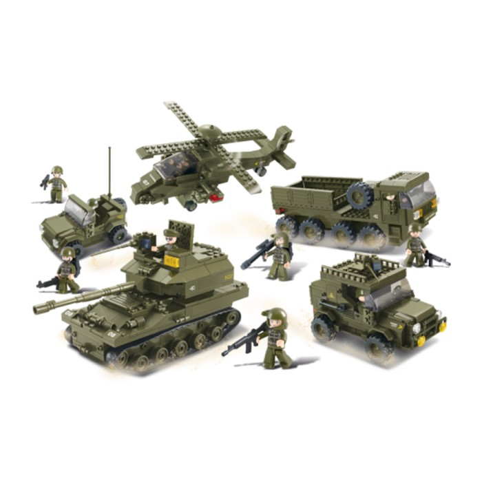Met deze uitgebreide Sluban Legerset heb je zo een heel leger in huis! Je kan hiermee maarliefst 5 legervoertuigen bouwen!