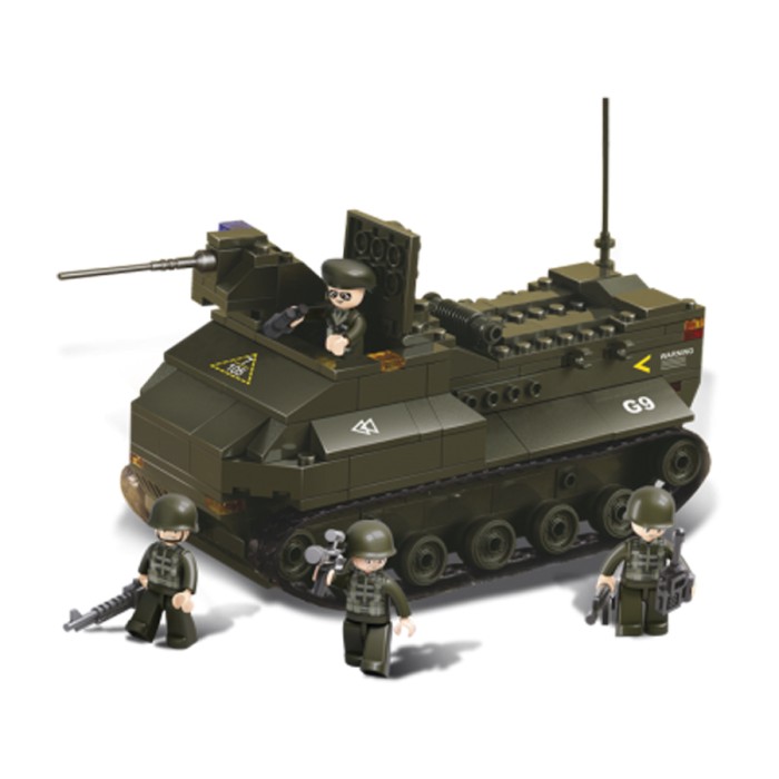 Dit Sluban Pantservoertuig laat zich nergens door tegenhouden! Ga dwars door de modder en het water op de vijand af! Sluban bouwsteentjes passen op andere merken bouwsteentjes. Dit bouwset is het ideale cadeau voor stoere jongens.