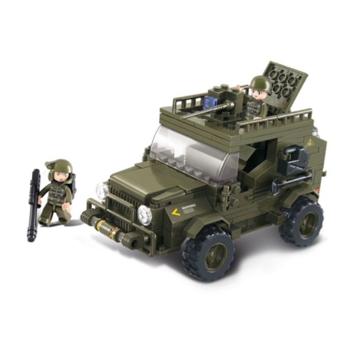 Onmisbaar tijdens patrouilles is deze Sluban Terreinwagen. Door een luik in het dak kun je het afweergeschut gebruiken en je verdedigen. Sluban bouwsteentjes passen op andere merken bouwsteentjes. Dit bouwset is het ideale cadeau voor stoere jongens.