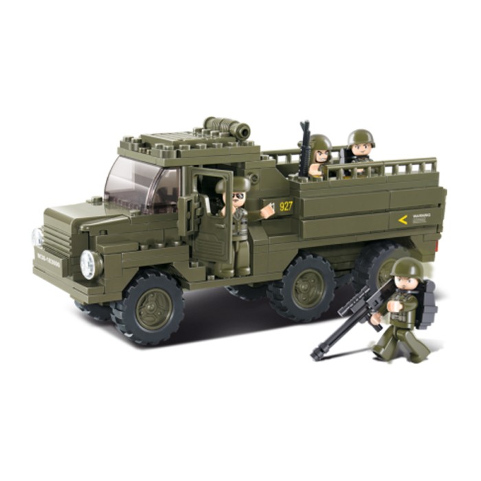 Om snel infanterietroepen naar het front te brengen zet je deze Sluban Troepentransporter in! Sluban bouwsteentjes passen op andere merken bouwsteentjes. Dit bouwset is het ideale cadeau voor stoere jongens.